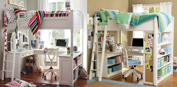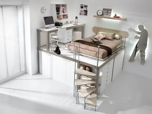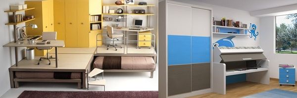 Una forma de economizar de manera inteligente el espacio disponible es aprovechar un espacio, que en teoría permanecería muerto, para convertirlo en un habitáculo de estudio. Así, mientas una cama al uso se mantendría en la superficie del suelo, en su lugar lo hace un mueble y escritorio y, por su parte, la cama adopta una estructura de litera.