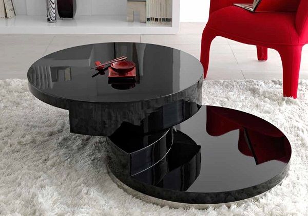 Con el mismo concepto pero variando en forma, encontramos esta mesa giratoria que, al tratarse de una forma circular, tenemos la facilidad de ubicarla en cualquier otro rincón, sin necesidad de que sea una mesa únicamente destinada para el centro del salón. Con un material lacado y en color negro, esta estructura se presenta como un elemento muy atractivo en cuanto a su estética, además de otorgarle un aire totalmente moderno.