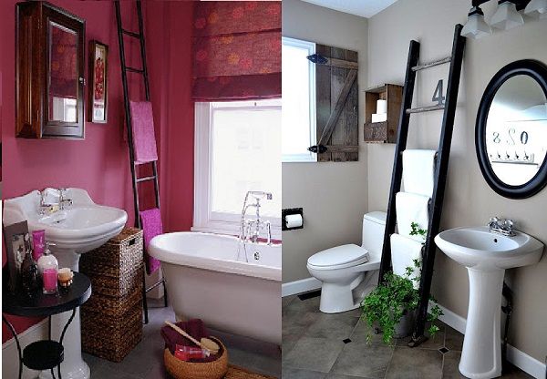 Las escaleras de madera que habitualmente usamos para elevarnos en altura y alcanzar algún objeto, ahora pueden servirnos como un elemento más de decoración de algún espacio. En este caso, el baño de nuestro hogar.