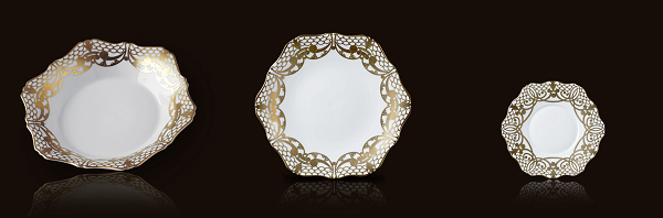 Adentrándonos más en la colección de platos, nos encontramos con algunos diseños que van a aportar mucha clase en la mesa. La primera colección, por ejemplo, está inspirada en el encaje belga típico del siglo XVI.