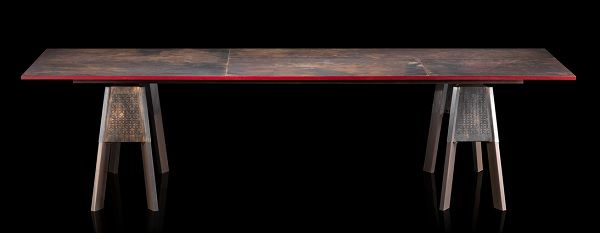 Mostramos una auténtica mesa de diseño de lujo. Se trata de una pieza con una estética única y muy exclusiva de Massimo Castagna para Henge, firma italiana de gama alta. No cabe duda de que esta mesa ha sido concebida con un gusto exquisito, cuyo diseño va a ofrecer un aire diferencial a la estancia donde se vaya a integrar.