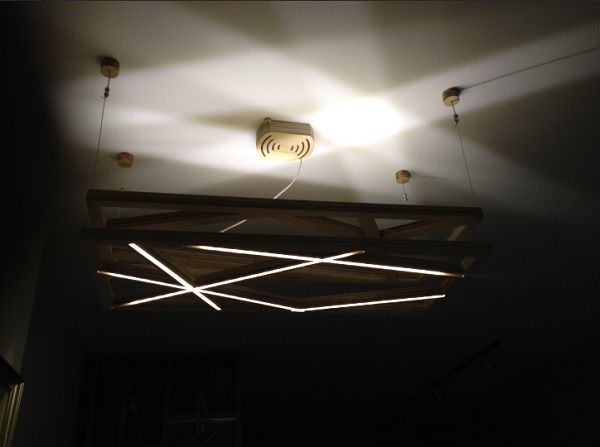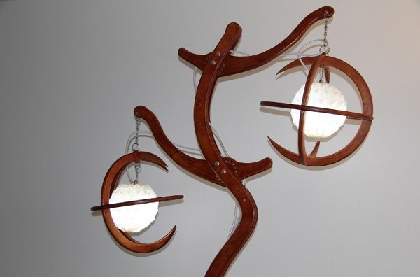 En las imágenes superiores podemos ver el diseño singular de un conjunto de luminarias para un restaurante cuyo motivo principal era la vid. La geometría pentagonal construida en madera evoca de forma elegante un racimo de uvas.