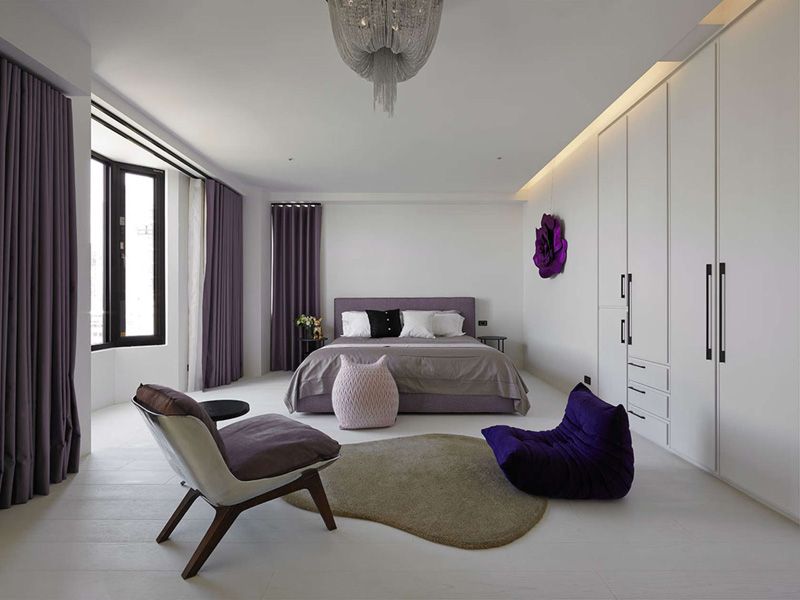 Por último, el dormitorio. Una estancia donde se respira la influencia del estilo oriental sin igual. El morado y los tonos lilas se convierten aquí, en los colores protagonistas.