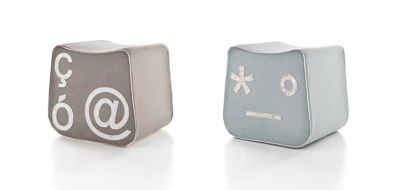 Pouf con un diseño original Pouf con un diseño originalPor otro, encontramos versiones más divertidas como este pouf con símbolos muy interactivos que, incluso, se convierten en mesita auxiliar de la manera más original posible.