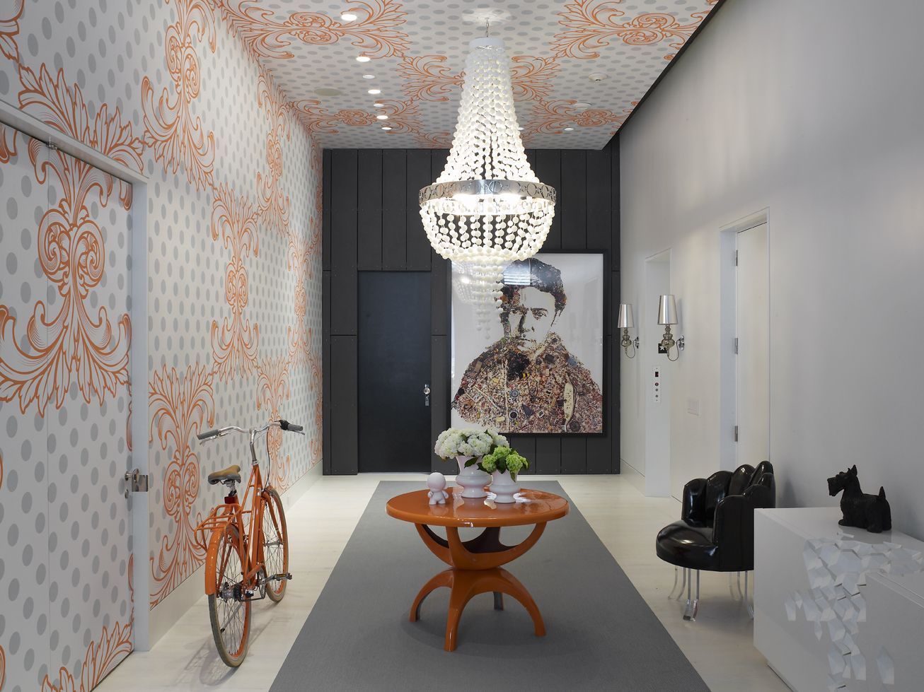 Este hall da la bienvenida a esta espectacular vivienda situada en la calle Warren Street de Nueva York. Como podemos apreciar, el color, los contrastes y los estilos vintage y art dèco convergen para dar lugar a un inmueble que ofrece un toque muy llamativo y singular.