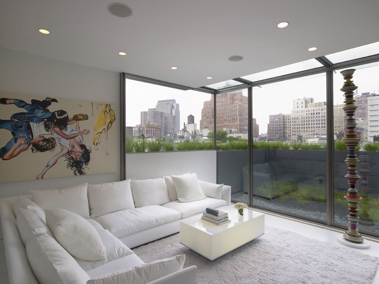 El salón es, quizás, la estancia más convencional si tomamos en cuenta el resto de salas. Su caracterísitca más llamativa la encontramos en las fantásticas vistas a la gran ciudad, ofreciendo así un carácter muy urbano.
