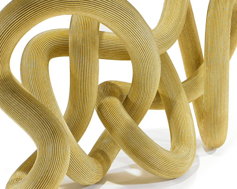 Así mismo, se trata de una pieza que se centra en el detalle y es eso, precisamente, lo que le hace tan especial. Y es que consiste en un bucle de más de medio kilómetro de hilos de alambre de cobre. Por el otro lado, encontramos el cristal como aliado principal a su base.