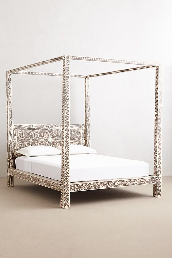 Otro ejemplar de cama decorada con hueso incrustado como si de un mosaico se tratara. Esta vez, se trata de una cama con dosel, ofreciendo el toque más romántico al dormitorio. Si lo que queremos es diseñar una habitación especial y de lujo , esta es sin duda, una de las mejores opciones.