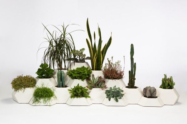 La firma española Pott ha creado estos interesantes maceteros modulares de forma hexagonal, que nos permiten jugar en la creación de escenografías vegetales.