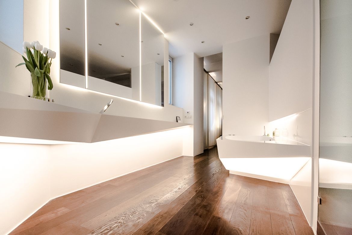 Con una estética donde la geometría se vuelve protagonosta, ICE Bath se inspira en la figura del hielo. Su mobiliario, empezando por la encimera, el lavabo y siguiendo por la bañera, adoptan una forma basada en líneas puras sin igual. Este rasgo, junto con el color blanco impoluto que gobierna absolutamente toda la estancia, hacen que este baño se vea envuelto por un estilo minimalista basado precisamente en estas líneas rectas y bruscas de las que hablábamos.