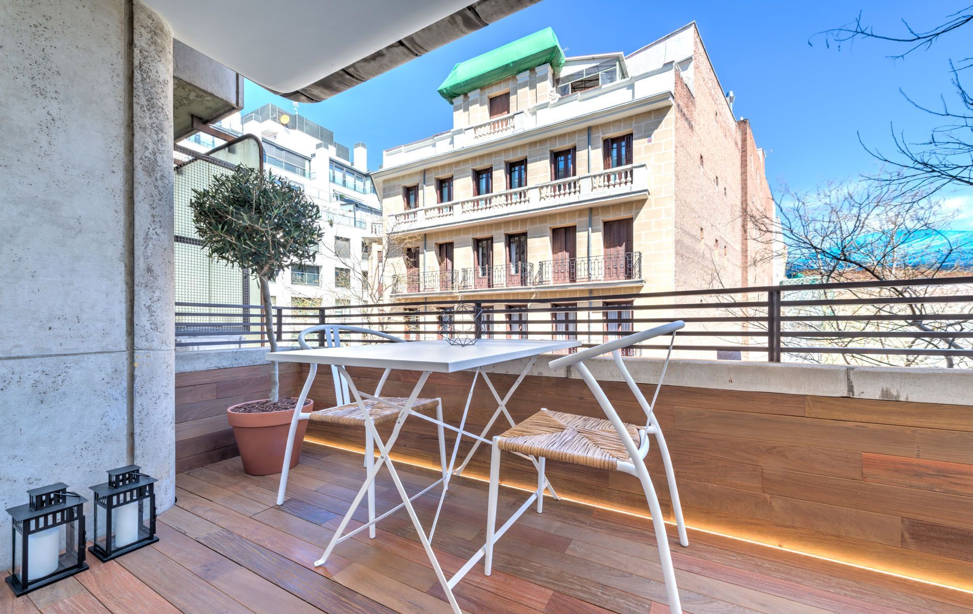 Localizado en un enclave muy señorial, Marqués de Riscal con Monte Esquinza, este edifico de corte moderno tiene vistas sobre un edificio histórico y de gran valor cultural en Madrid: el frontón Beti Jai, recientemente remozado.